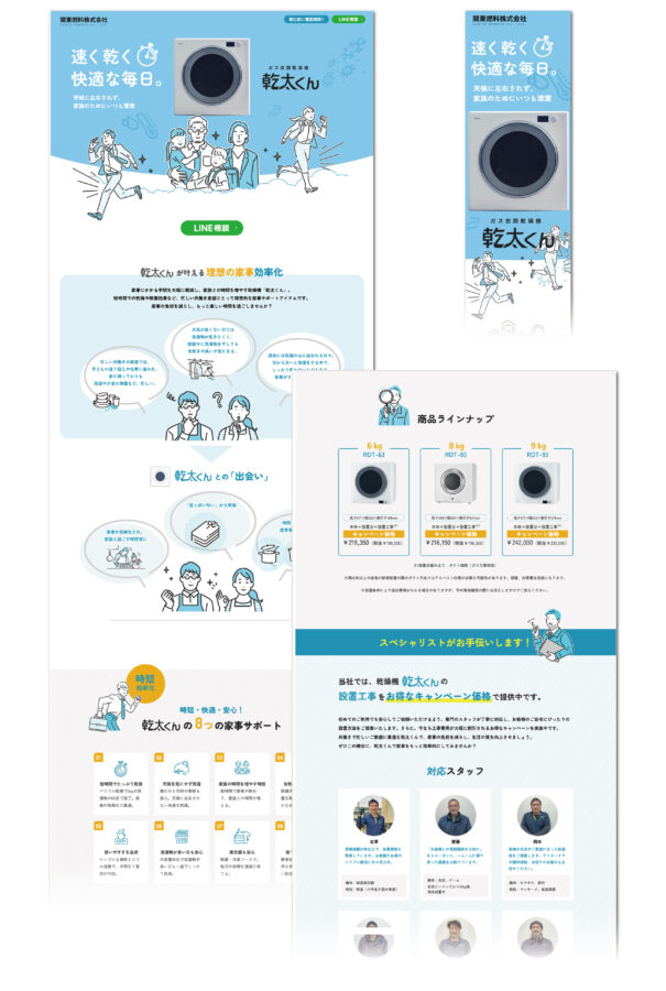 前橋市でガス・灯油の配達や住宅設備機器の販売を行う企業様の、衣類乾燥機の販促を目的としたLP(ランディングページ)制作とWEB広告運用をトータルでサポートしました。