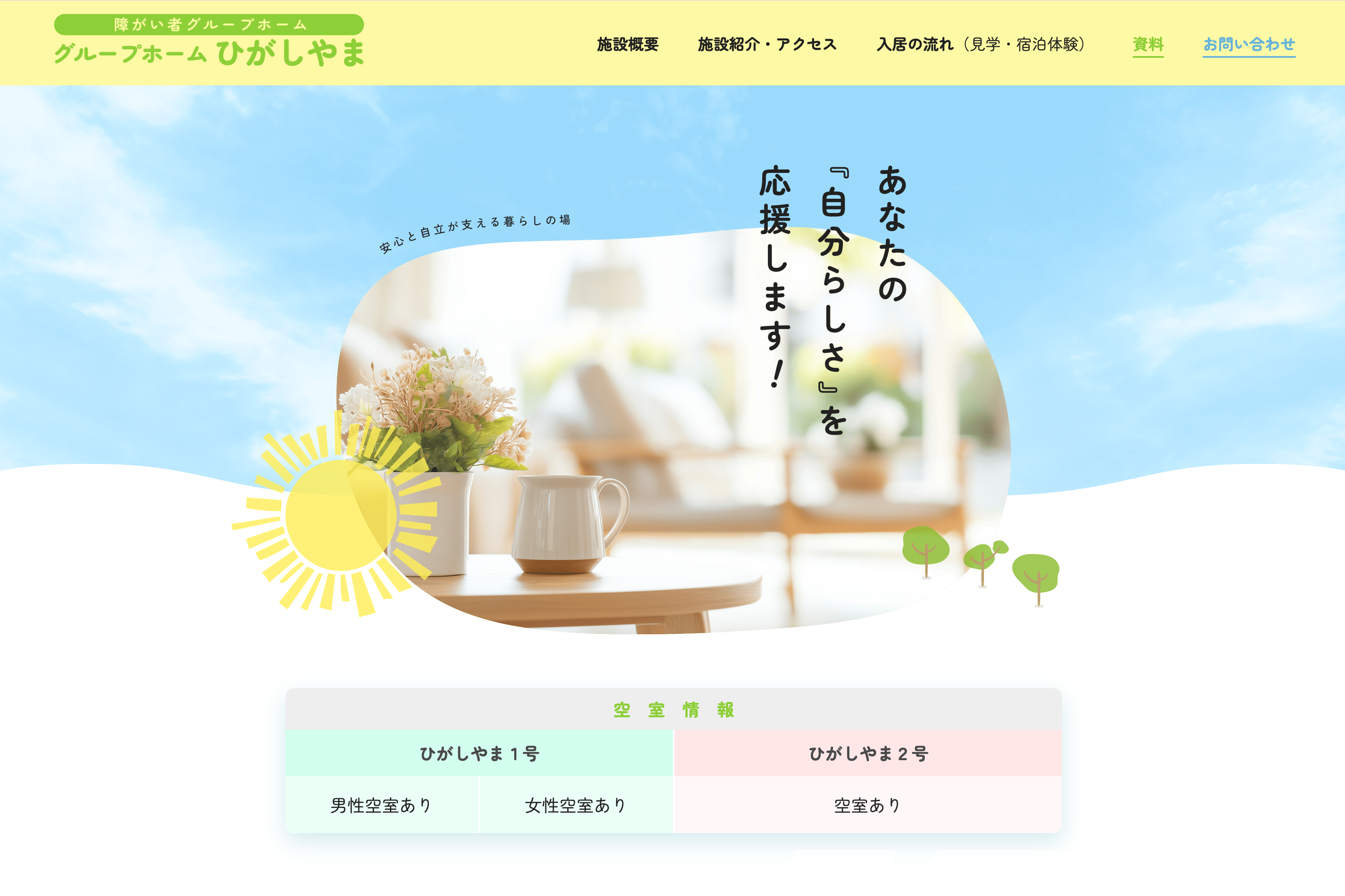 【障がい者グループホームひがしやま様】 障がい者グループホーム様 ホームページ制作 -