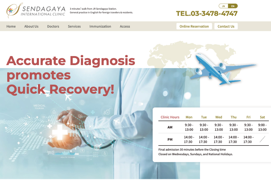 アルファー企画が制作した Sendagaya International Clinic の英語版サイトは、
